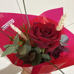 eucalipto - 1 ud. rosa roja natural - 1 ud. espigas secas decorativas - 2 ud.