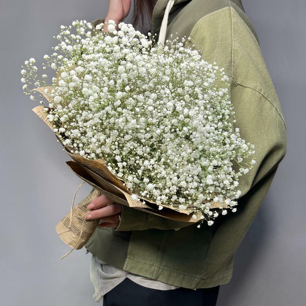 The gypsophila is a spriggy plant with a number of small, odourless, snow-white inflorescences. It goes well with most flowers, making it popular with florists as a bouquet decoration. Delicate and airy, gypsophilas will give any flower arrangement a festive and lush look. FLOWER CARE TIPS To protect flowers from bacteria, florists recommend removing all foliage from their stems before placing them in water. FLORAL FACTS After drying, the gypsophila turns into a dried flower, without losing its shape or colour.