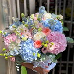 Un arreglo floral de ensueño en tonos pastel que combina la delicadeza y la frescura de las flores en un diseño sofisticado.