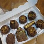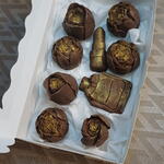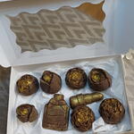 chocolat(cacao,beurre de cacao. sucre.lait.arômes.émulsifiants) huile de coco feuille d'or comestible