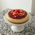 Base de biscuit sans gluten, fromage à la crème onctueux avec confiture et fruits rouges. Conserver au réfrigérateur avant de consommer. 20cm rend de 6 à 10 portions.