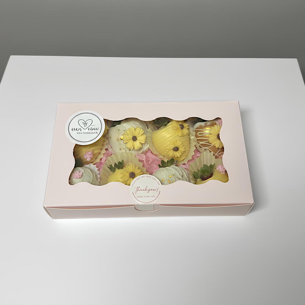 petite boîte édition tournesol Fraises recouvertes de chocolat blanc et d'une touche dorée, décorées à la main avec amour