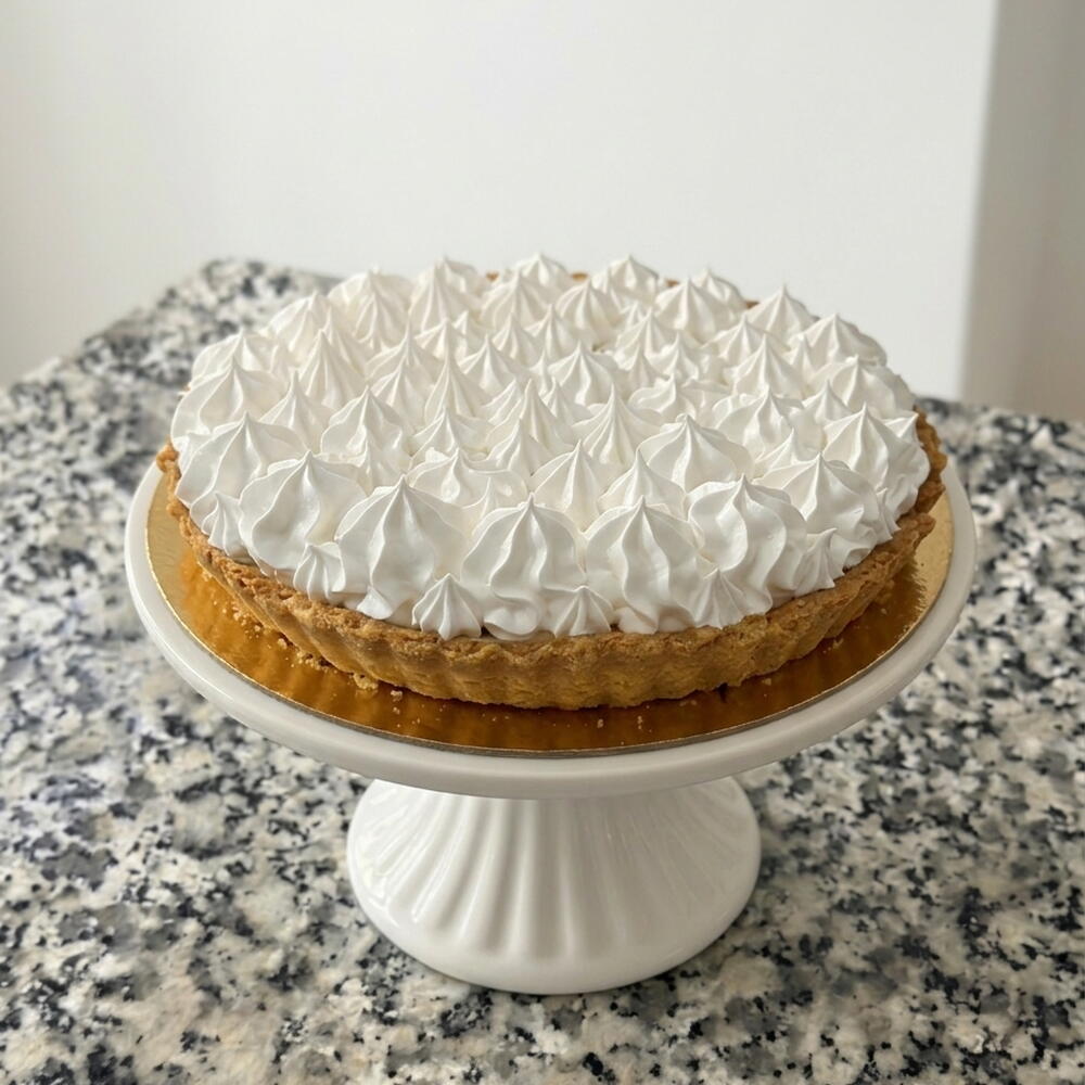 Base de pâte sablée, garnie de crème au citron et de meringue italienne. Conserver au réfrigérateur avant de consommer. 20 cm rend 12 à 16 portions