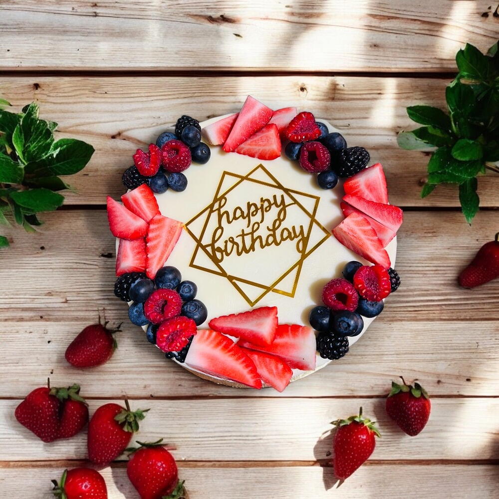 Tarte aux myrtilles et fromage frais, zeste de citron vert La tarte aux myrtilles et fromage frais, zeste de citron vert, allie fraîcheur, onctuosité et moelleux. Cette tarte est un gâteau moelleux et fondant, composé de fromage frais, de myrtilles fraîches et de zeste de citron vert. Elle contient des œufs et de la farine de blé, ce qui lui confère une texture onctueuse et un équilibre entre douceur et agrumes. Pour la garniture, nous utilisons une crème au beurre onctueuse, agrémentée d'une généreuse couche de confiture de myrtilles maison, offrant un délicieux contraste de saveurs et une explosion de fruits rouges à chaque bouchée. Le nappage est une crème au beurre onctueuse, décorée de fruits rouges variés. Parfait pour toutes les occasions spéciales, qu'il s'agisse d'un anniversaire, d'une réunion de famille ou tout simplement pour se faire plaisir.