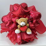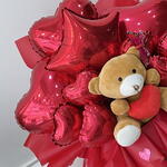 composición con globos foil rojos en forma de estrellas y corazones, acompañados de un tierno osito de peluche. Globos de alta calidad, fabricación española. El regalo perfecto para sorprender y enamorar.❤️🎈🧸