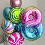 Composition multicolore qui transmet la joie instantanément. Idéale pour enfants et adultes. 5 - ballons métalliques de couleurs différentes 5 - ballons normaux de couleurs métalliques différentes 1 - ballon métallique numéro