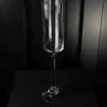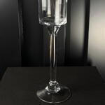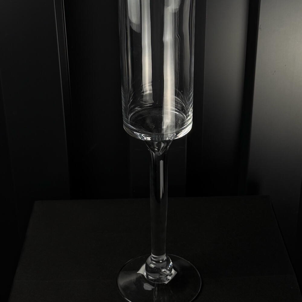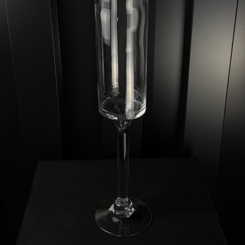 Jarrón de vidrio transparente con pie alto, elegante y sofisticado, ideal para flores largas y decoración de eventos.