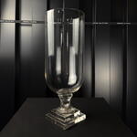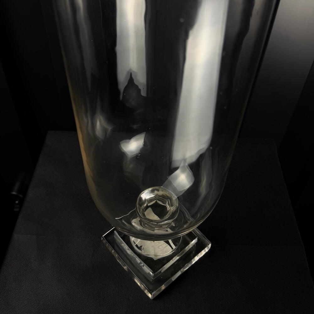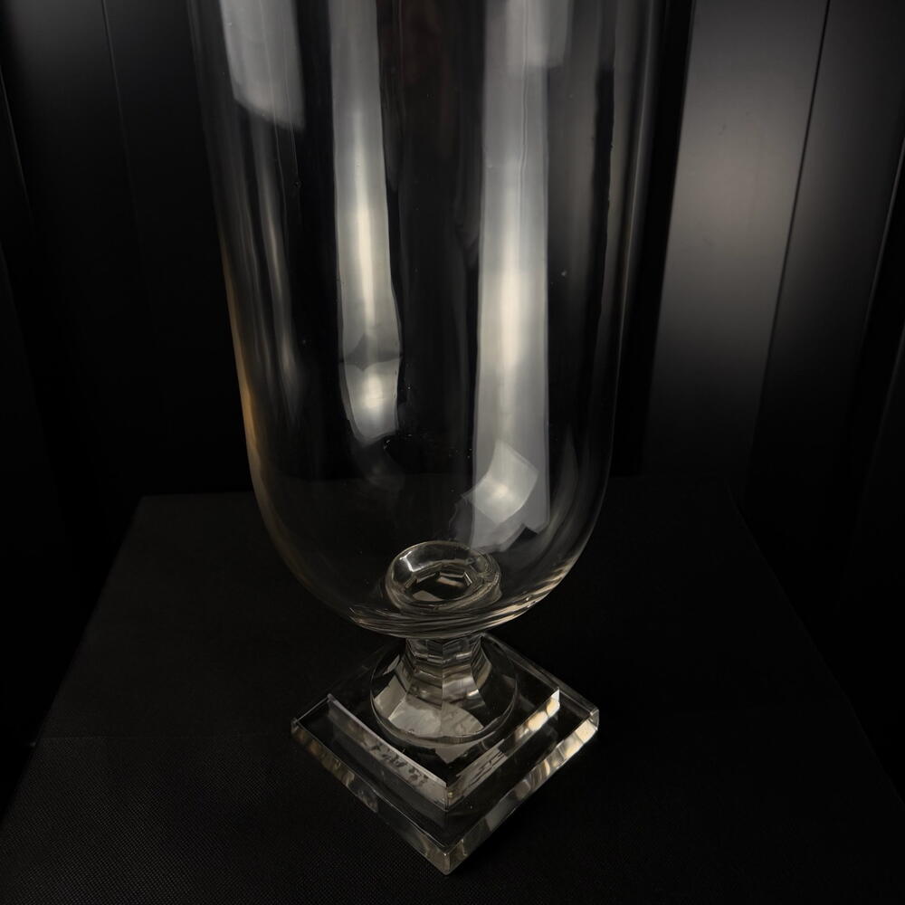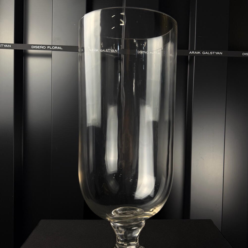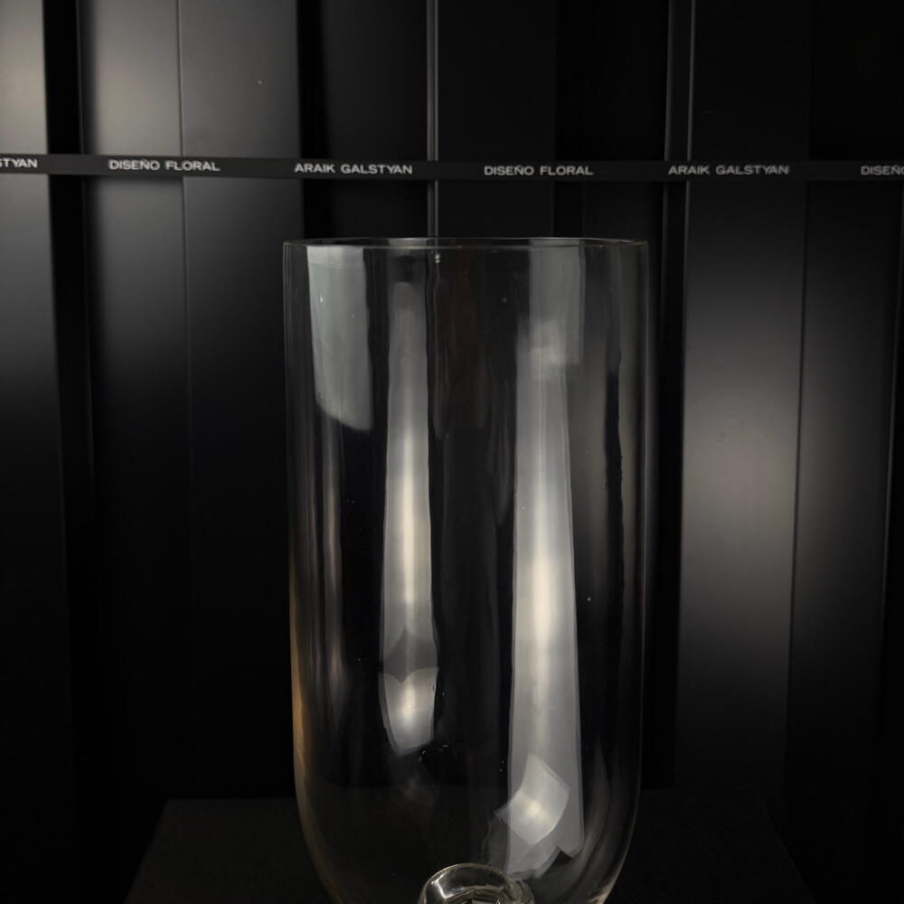 Jarrón de vidrio transparente con base decorativa, diseño elegante y minimalista, ideal para arreglos florales y decoración interior. a.064