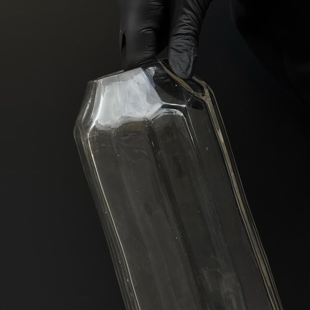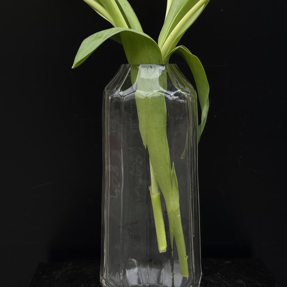 El jarrón transparente con facetas es un elegante elemento decorativo de vidrio con superficies facetadas que reflejan la luz. Su diseño moderno resalta la belleza de flores y arreglos, adaptándose a cualquier estilo de interior. 🌸 *También disponible en versión más pequeña.
