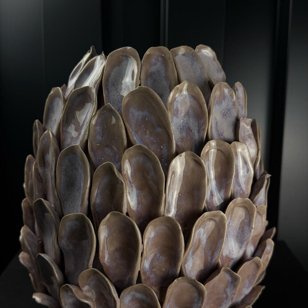 Un vase décoratif au design organique et élégant, inspiré des formes naturelles. Sa structure est composée de multiples pièces superposées, évoquant des pétales ou des écailles, créant un effet tridimensionnel unique et raffiné. Parfait comme centre de table dans un salon, une salle à manger ou une entrée. Il peut accueillir des fleurs séchées, des compositions artificielles ou être utilisé seul. Caractéristiques : Design moderne et artistique Texture tridimensionnelle évoquant des pétales Finition élégante aux tons naturels Idéal pour la décoration intérieure Utilisation polyvalente : avec ou sans fleurs Apportez une touche exclusive et naturelle à votre intérieur avec ce vase décoratif unique.