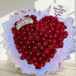 Este espectacular bouquet en forma de corazón con 100 rosas rojas es el símbolo perfecto del amor verdadero, la pasión y la devoción. Diseñado cuidadosamente para crear una forma armoniosa y elegante, este arreglo floral destaca por sus detalles exclusivos como las perlas decorativas y la corona, que aportan un toque de lujo y sofisticación. Ideal para San Valentín, aniversarios, propuestas de matrimonio o momentos inolvidables, este bouquet es una de las opciones más impactantes dentro de los ramos románticos premium. Su diseño en forma de corazón transmite emociones profundas y convierte cualquier ocasión en un recuerdo inolvidable.