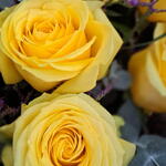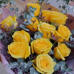 Limonium - 5 pce roses jaunes - 12 pce eucalyptus cinerea - 5 pce