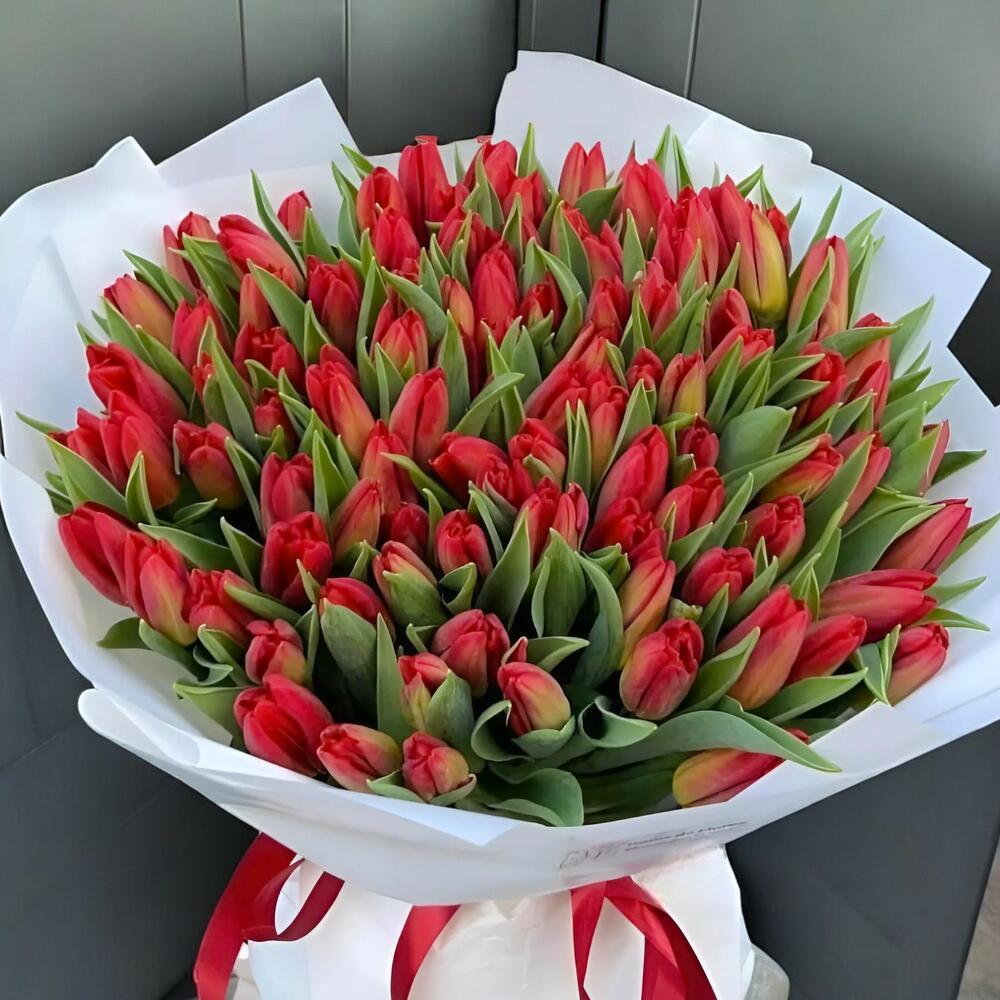 Bouquet de 80 tulipes rouges