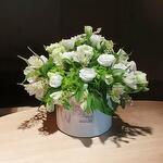 Ce design, réalisé avec des fleurs blanches fraîches et une touche de vert vif, est idéal à offrir pour des occasions spéciales comme des anniversaires, des mariages ou pour exprimer vos meilleurs vœux.