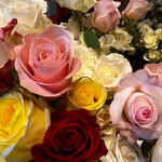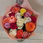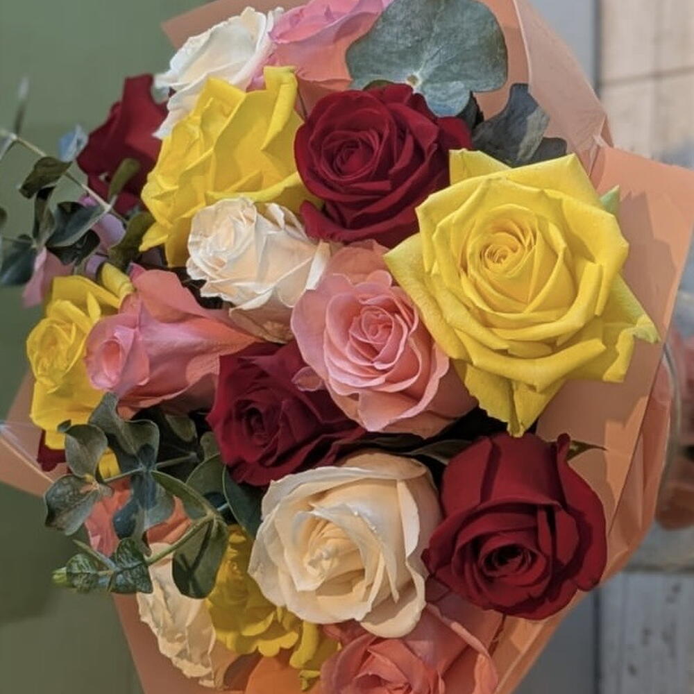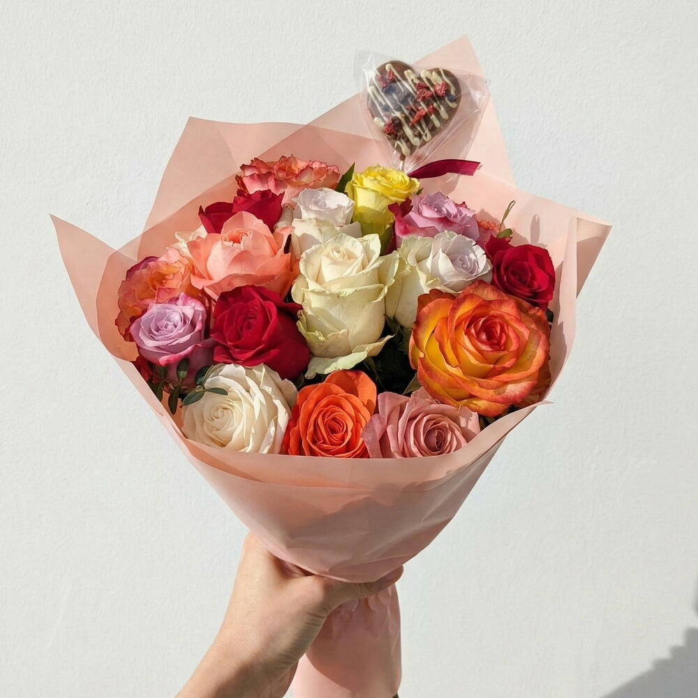 Bouquet de roses mélangées. Exclusif Saint-Valentin avec pique cœur