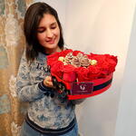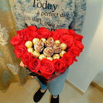 Élégante boîte qui allie la passion de 17 roses premium à la douceur de 12 chocolats Ferrero Rocher et de 4 fraises artisanales enrobées de chocolat. Le cadeau parfait pour impressionner.