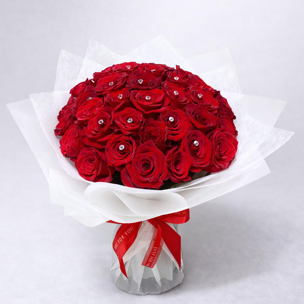 Bouquet élégant de 25 roses rouges avec un détail en cristal sur chaque rose, présenté dans un vase en cristal qui met en valeur son éclat et sa sophistication. Un cadeau spectaculaire pour la Saint-Valentin, les anniversaires ou pour dire “je t'aime” en grand. Inclut un emballage premium prêt à offrir.