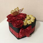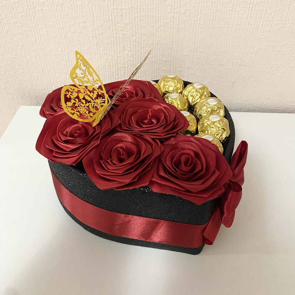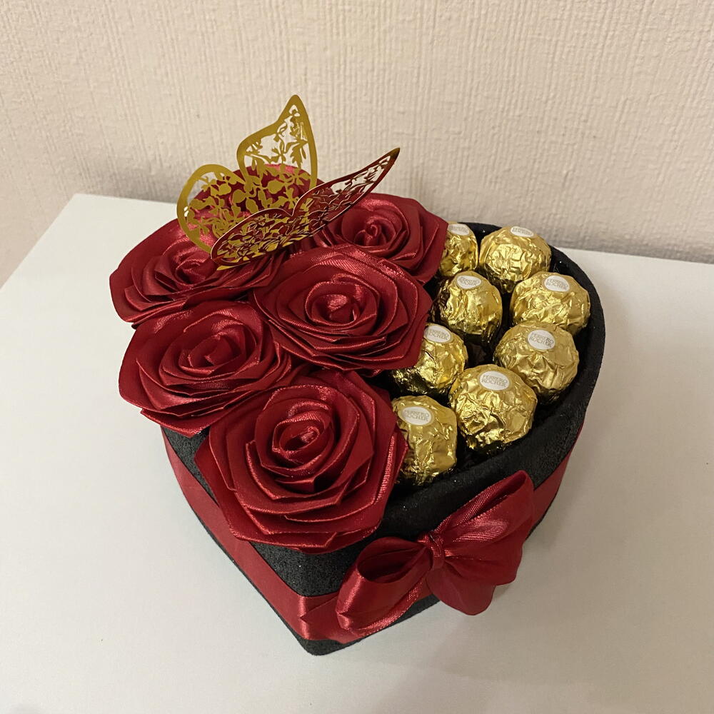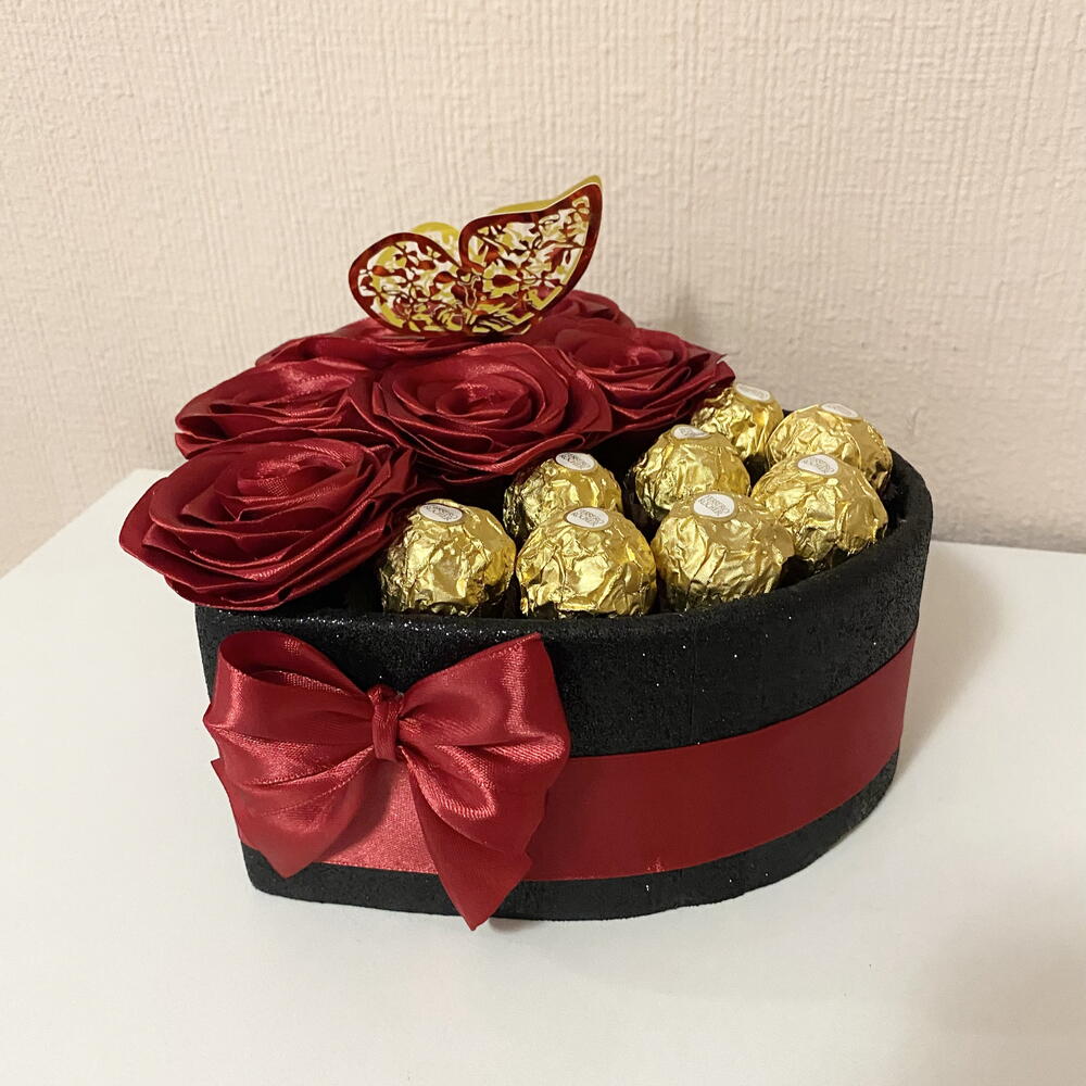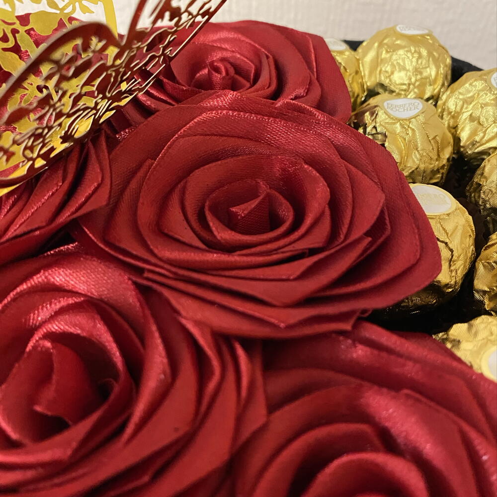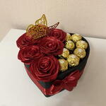 Cadeau unique, fait à la main. Une composition exclusive, faite à la main, où 6 roses éternelles faites à la main et 8 bonbons Ferrero premium s'unissent en parfaite harmonie. La boîte en forme de cœur, les tons rouges intenses et les détails dorés créent un cadeau visuellement saisissant, rempli d'émotion et d'élégance. Un choix parfait tant pour les femmes que pour les hommes – idéal pour les anniversaires, les anniversaires de mariage ou toute occasion où vous souhaitez surprendre avec quelque chose de vraiment spécial.