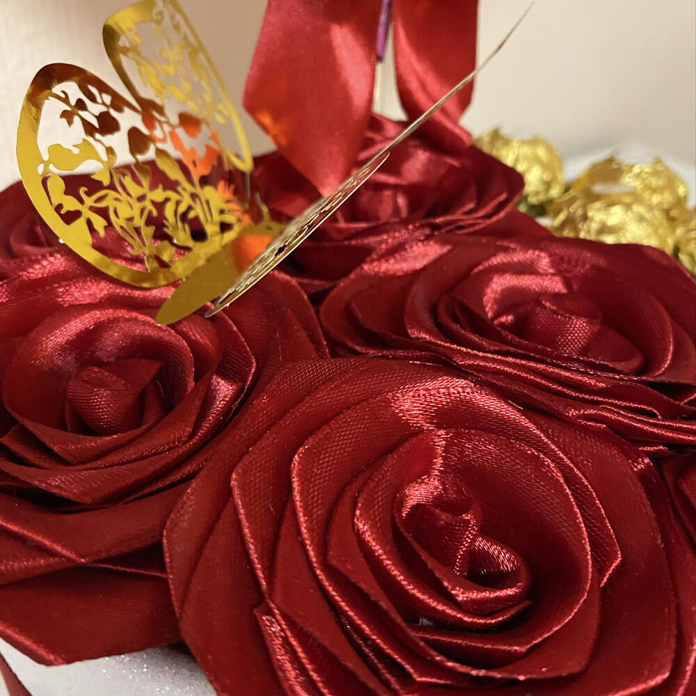 Une création spéciale faite à la main avec le cœur ! ❤️ Cette élégante boîte en forme de cœur est le cadeau parfait pour la Fête des Mères, ou si vous voulez surprendre votre maman avec un cadeau unique et rempli d'amour. La combinaison de roses en satin faites à la main, de chocolats Ferrero Rocher et du ballon en forme de cœur “Je t'aime Maman” crée un ensemble harmonieux et émouvant qui ne passera pas inaperçu. Contenu de la boîte: - 6 roses faites à la main - 9 chocolats Ferrero Rocher - 1 ballon en forme de cœur “Je t'aime Maman” Dimensions: Largeur : env. 35 cm Hauteur : env. 55 cm Chaque pièce est élaborée avec soin et affection, faisant de ce cadeau un souvenir inoubliable. Parfait pour exprimer: 💖 amour 💖 gratitude 💖 affection Comprend 9 chocolats Ferrero Rocher de haute qualité. Ingrédients : chocolat au lait, noisettes, sucre, huile végétale (palme), farine de blé, dérivés du lait, poudre de cacao, lécithine de soja, agent levant, sel et arômes. Allergènes : lait, noisettes, gluten et soja.