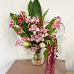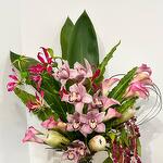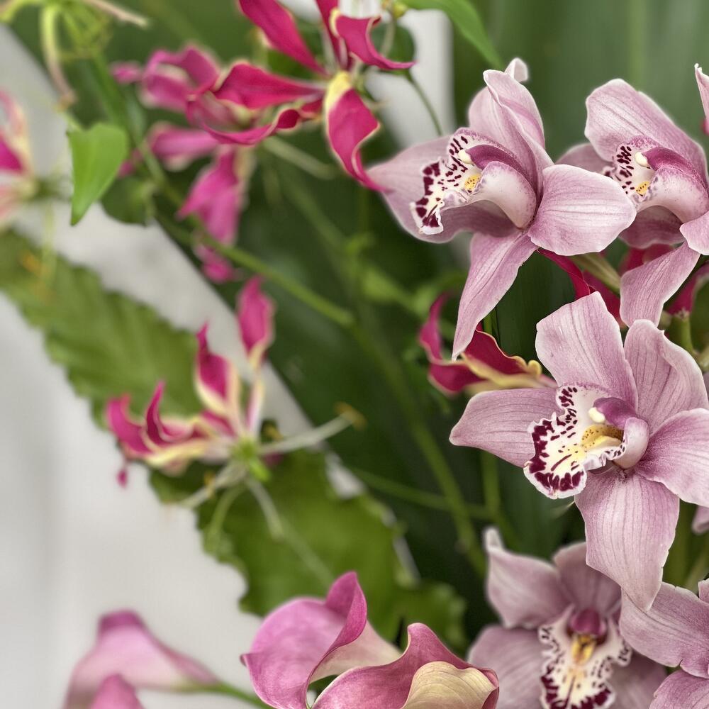 amarante - 5 pce protéa - 3 pce orchidée - 1 pce verde variado - 7 pce calla - 13 pce gloriosa - 3 pce