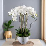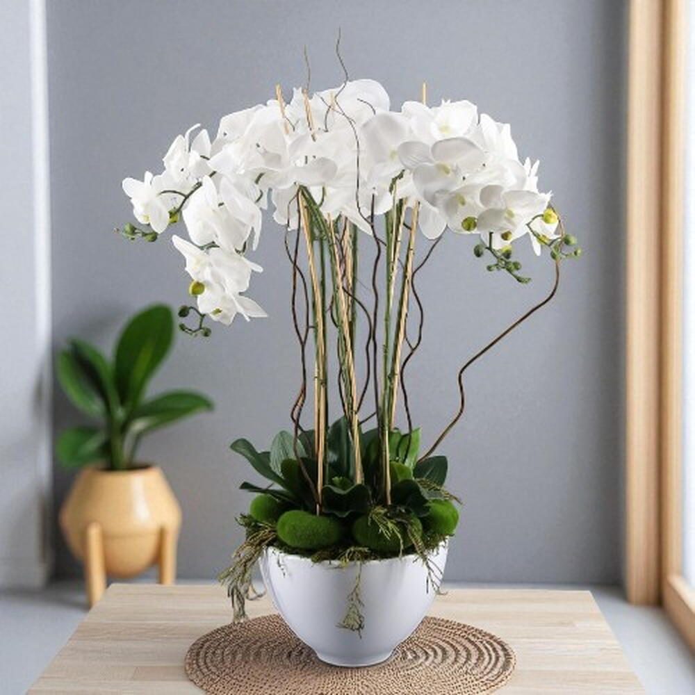 Grand centre d'orchidées artificielles blanches