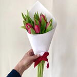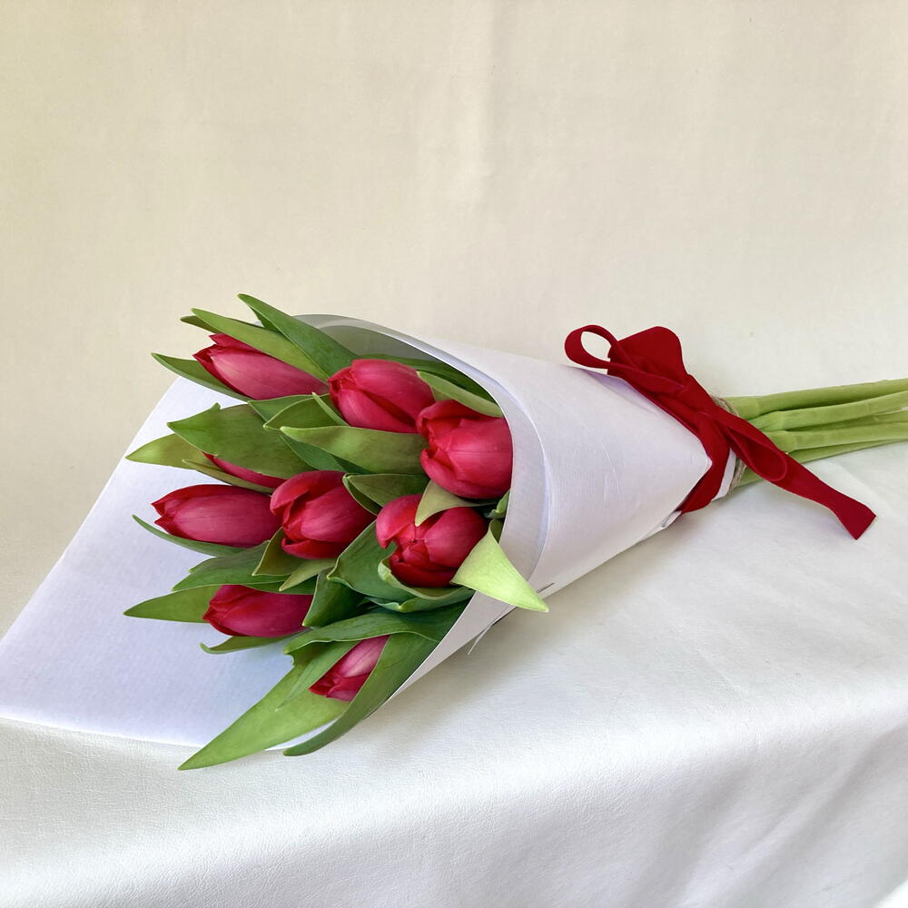 Ce charmant bouquet classique se compose de 10 tulipes rouges éblouissantes, soigneusement sélectionnées et arrangées. La présentation se distingue par son emballage élégant et son ruban, rehaussant la sophistication de la composition. Un cadeau parfait pour transmettre de l'amour et de l'appréciation en toute occasion.