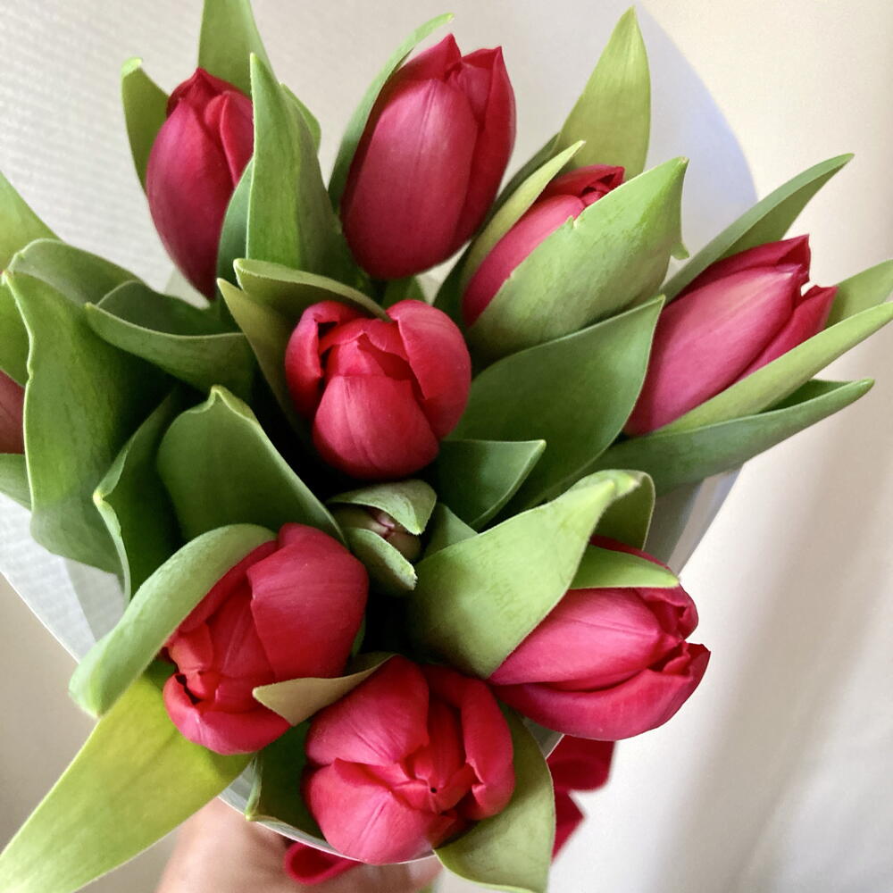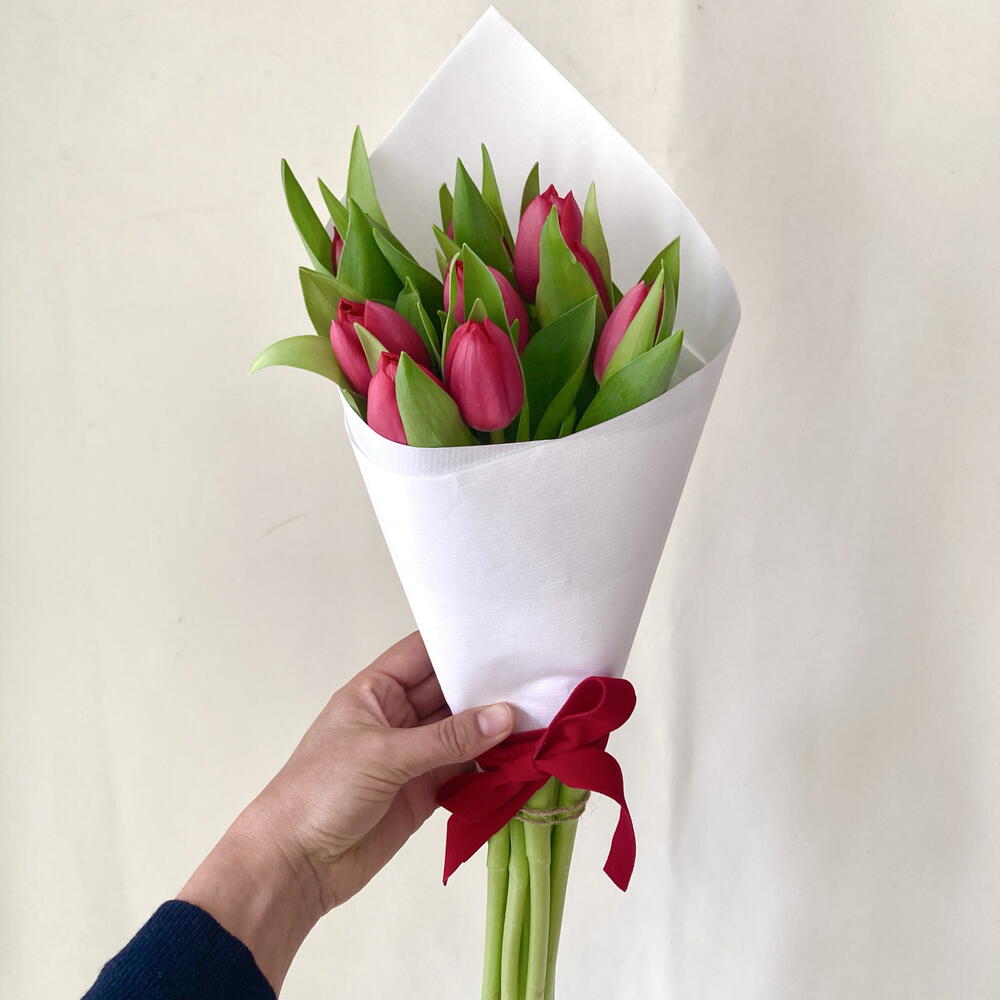 tulipes rouges - 10 pce emballage et ruban - 1 pce