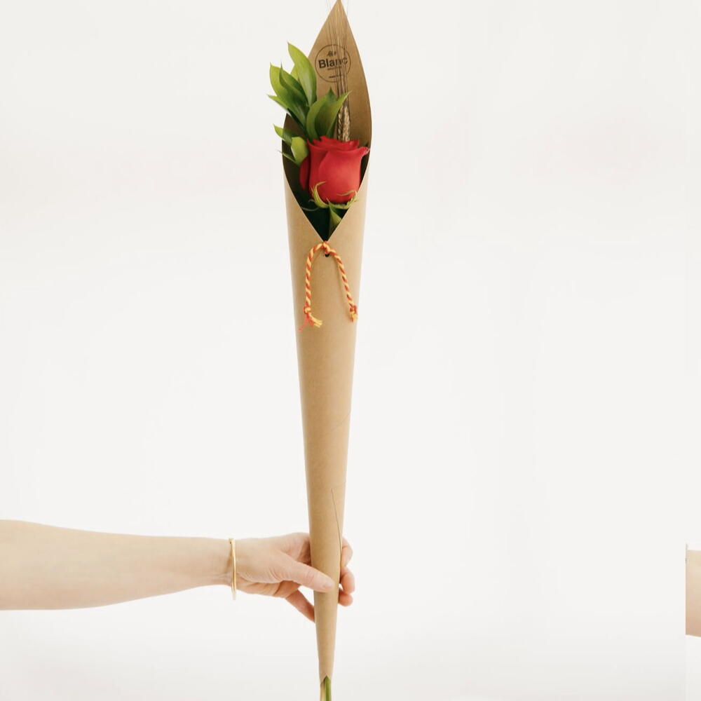 rose rouge - 1 pce cône en papier kraft - 1 pce