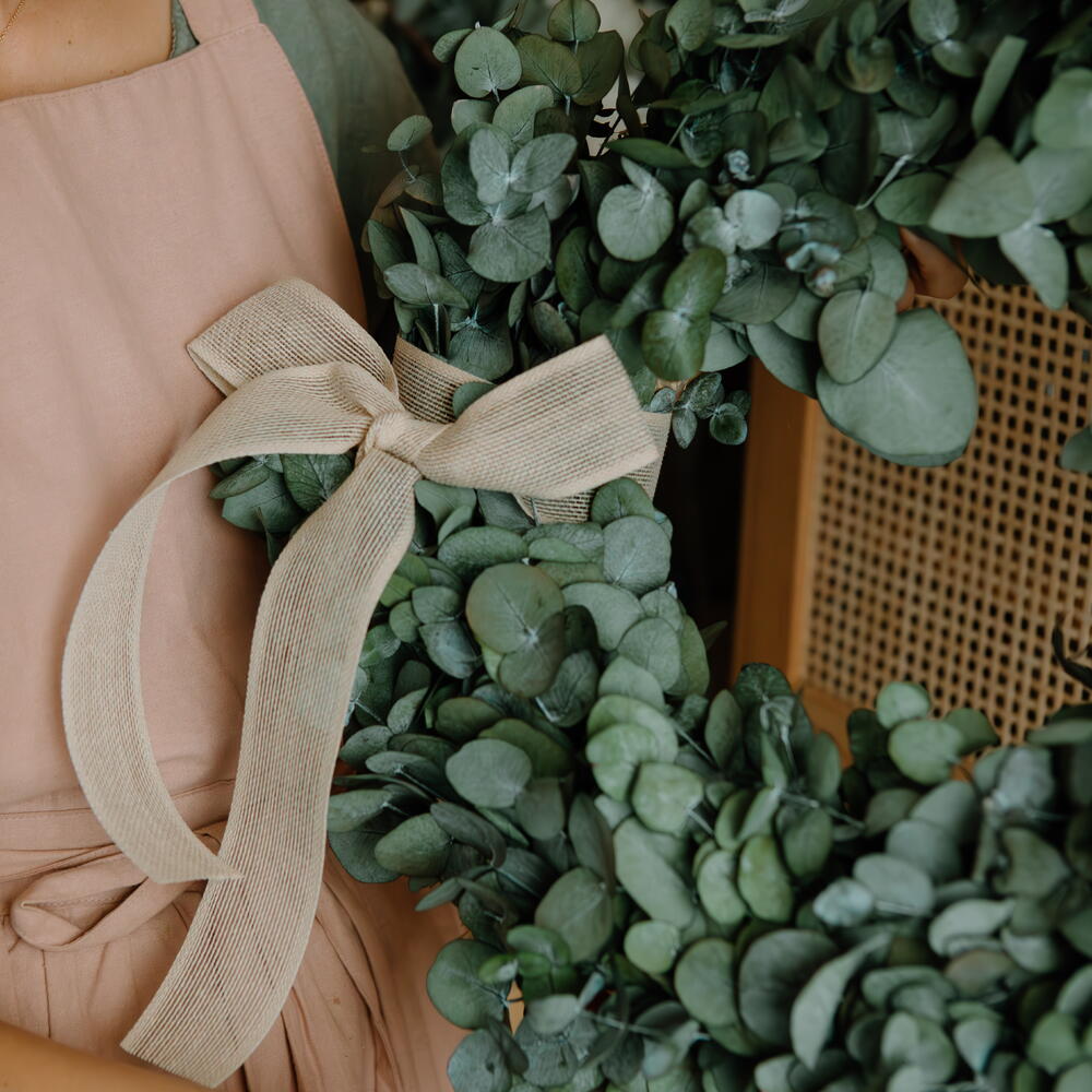 Couronne d'eucalyptus naturel préservé – décoration artisanale pour porte et mur