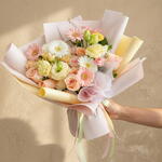 Este maravilloso ramo De autor se compone de una delicada mezcla de flores con 2 unidades de Gerbera blancas, 3 unidades de Gerbera rosadas, 5 unidades de rosas rosadas y 4 unidades de rosas en tonos amarillos o blancos. Un regalo perfecto y sublime que presenta un equilibrio perfecto de elegancia y alegría. Ideal para sorprender y alegrar el día de alguien especial.