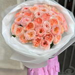 Ce bouquet est composé de roses aux tons pêche, délicates et élégantes, qui évoquent la chaleur et la douceur d'un coucher de soleil. Il est parfait pour exprimer des émotions profondes et ajouter une touche de sophistication à toute occasion.