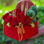 épi - 3 pce boîte en forme de cœur - 1 pce roses rouges - 7 pce peluche dragon - 1 pce