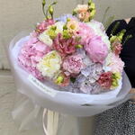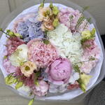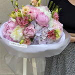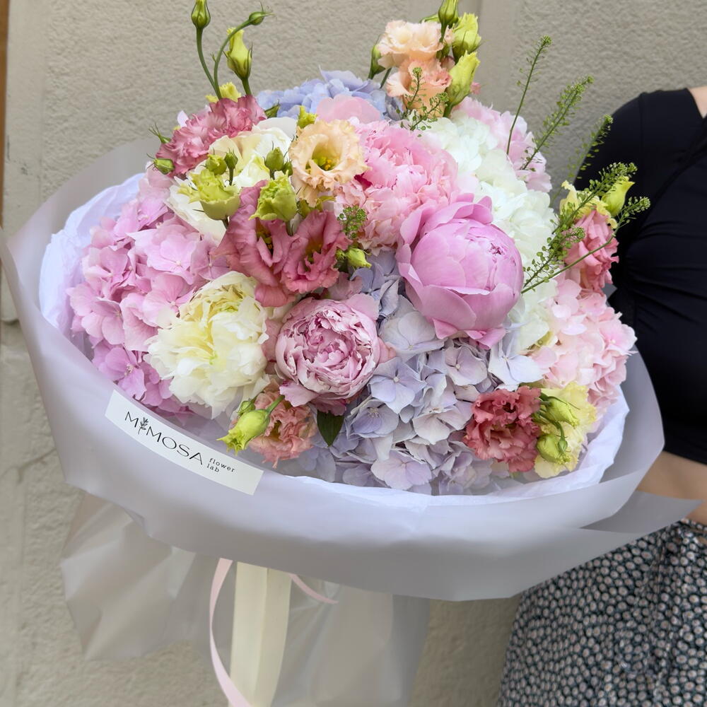 Cet arrangement floral de la catégorie De Créateur est une véritable œuvre d'art naturelle. Il se compose de lisianthus, des fleurs connues pour leur élégance et leur beauté durable. De plus, Green Bell, qui ajoutent une touche de fraîcheur et de vert à la composition. Le bouquet est orné de 7 unités de pivoines, symbole de richesse et d'honneur, apportant une touche de luxe à l'ensemble. Pour lui donner du volume et de la splendeur, on incorpore avec maîtrise 8 unités d'hortensias mixtes, des fleurs spectaculaires en raison de leur grande taille et de leurs variations de couleur. Parfait pour décorer avec classe et personnalité, et également idéal pour faire un cadeau inoubliable.