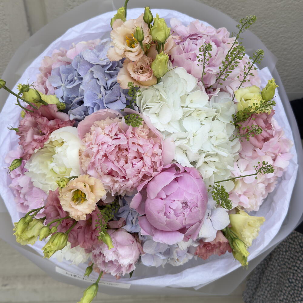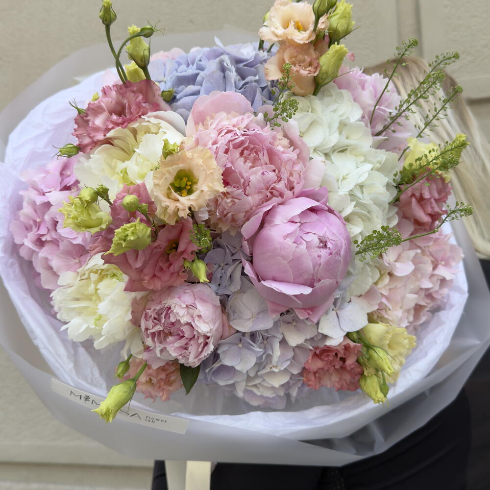 Lisianthus - 5 pce Cloche verte - 3 pce mélange d'hortensias - 8 pce pivoine ou pivoine rose de jardin - 7 pce