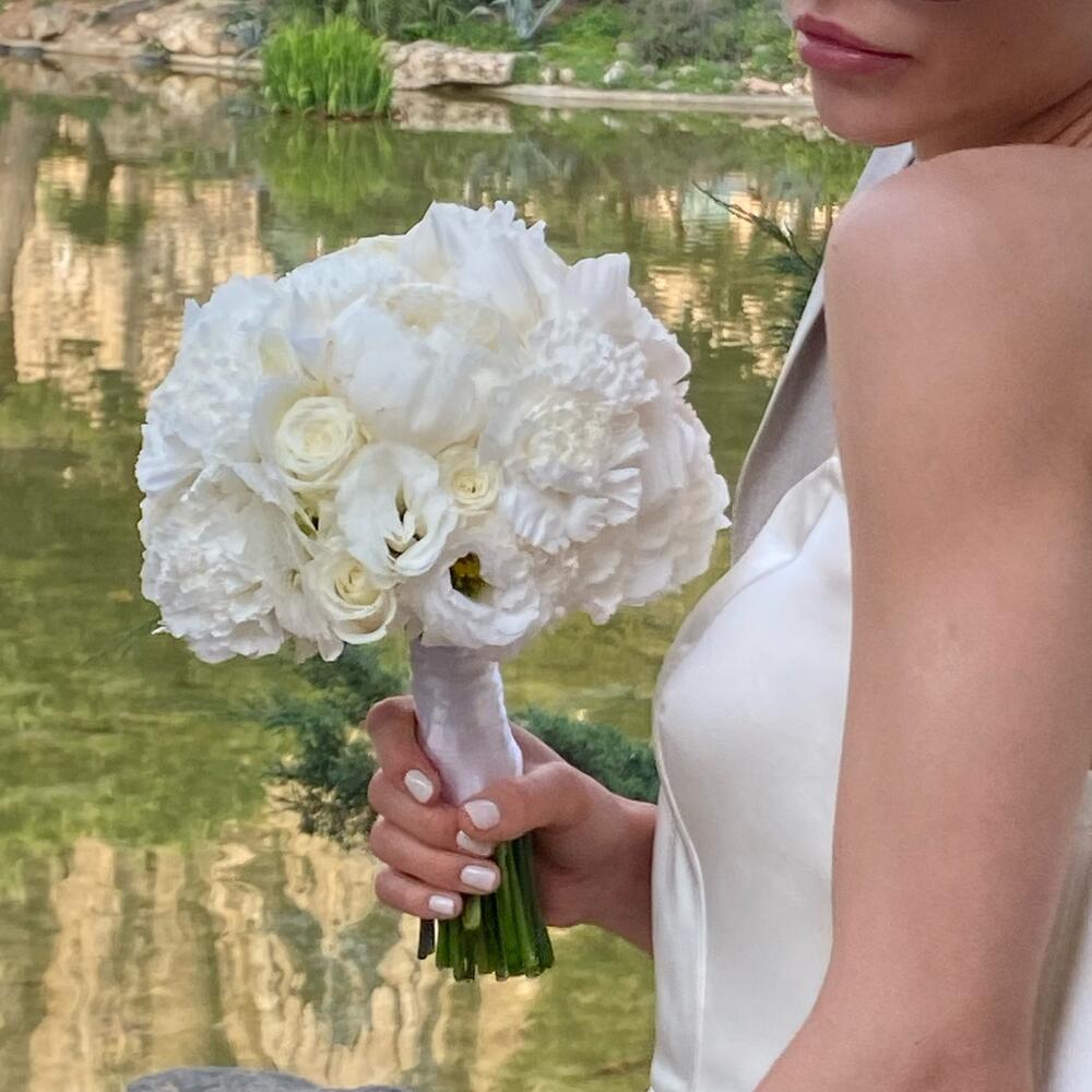Ribbon - 1 pce pivoines - 10 pce lisianthus - 10 pce roses - 10 pce
