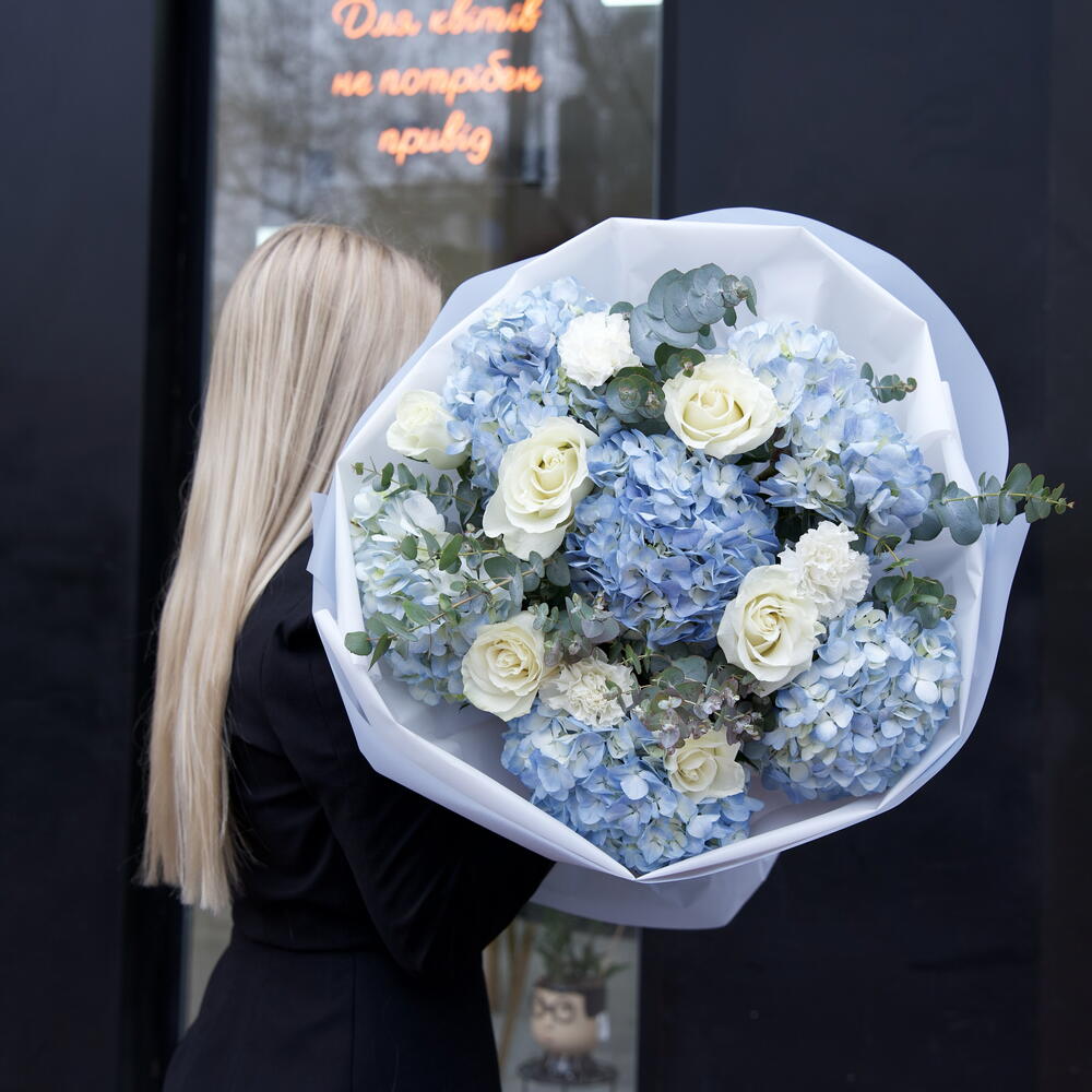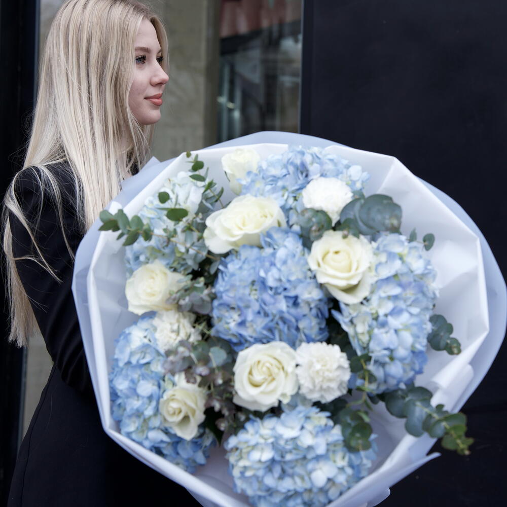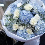 hortensia - 6 pce eucalyptus - 3 pce rosas - 5 pce clavel - 3 pce