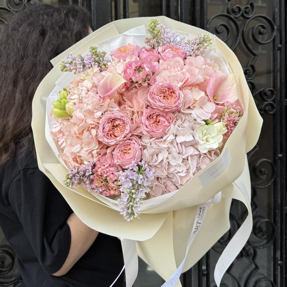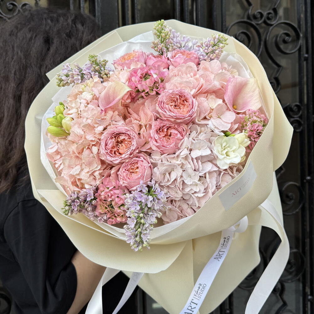 Hortensia - 4 pce Lilas - 4 pce Rose pivoine - 2 pce Freesia Blanche - 3 pce renoncule pon pon - 3 pce