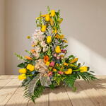 Este arreglo floral transmite calidez, esperanza y un tierno mensaje de consuelo. Las rosas amarillas simbolizan la luz que permanece incluso en los momentos más difíciles, creando un ambiente relajante. Los lirios y las orquídeas aportan elegancia y pureza, elevando a la sociedad con su presencia refinada. Los tonos suaves y brillantes se combinan armoniosamente, reflejando la paz y la serenidad. El follaje verde enmarca cada flor, destacando su belleza natural y frescura. Este ramo es la elección perfecta para expresar apoyo, cuidado y respeto. Una compañía llena de sensibilidad que acompaña dignamente cualquier ocasión especial.