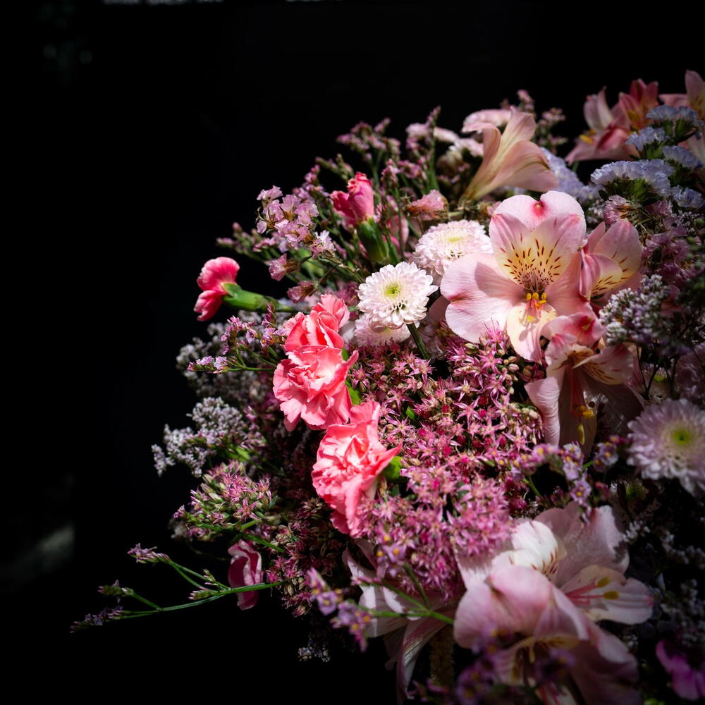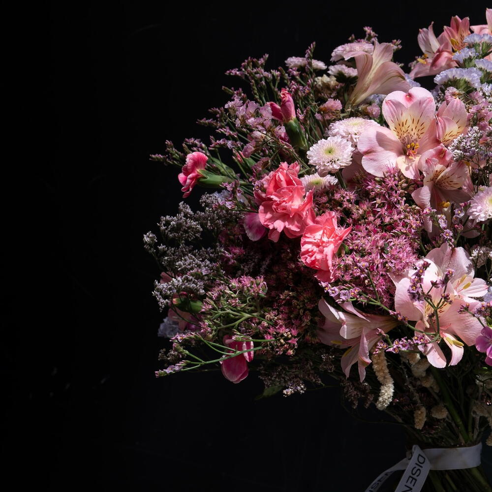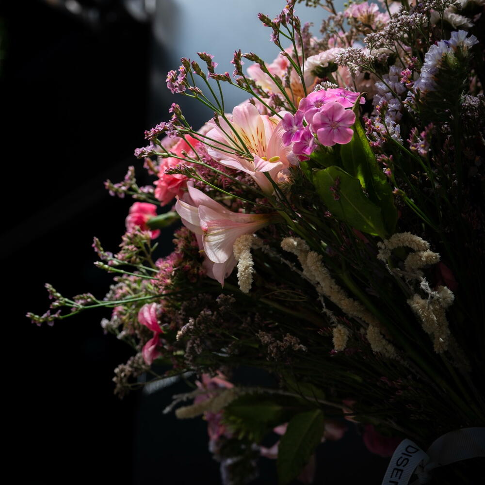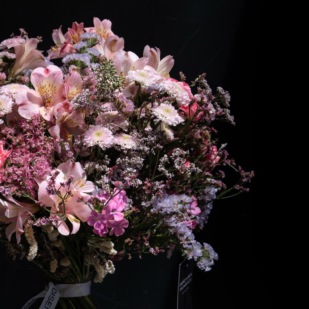 Ce bouquet est l'incarnation de la tendresse et de la délicatesse romantique. Les doux tons rosés s'entrelacent avec de légers accents champêtres, créant une sensation de légèreté et une douce touche de printemps. Chaque fleur ici s'ouvre à sa manière : certaines apportent de l'éclat, d'autres de la profondeur, et ensemble elles forment une harmonie qui captive le regard.