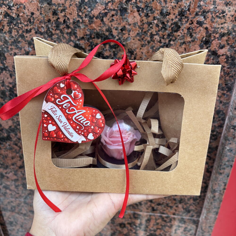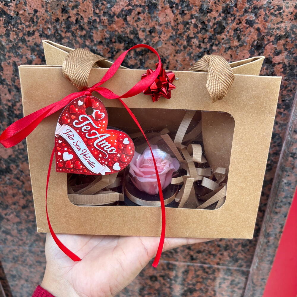 sac cadeau - 1 pce rose mini préservée - 1 pce mini dôme - 1 pce