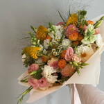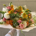 Spray rose - 10 pce Lisianthus - 5 pce cosmos - 5 pce antirrinum - 5 pce pittosporum - 5 pce panicum - 10 pce kniphofia - 5 pce dhalias - 9 pce