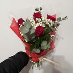 eucalyptus - 3 pce rosas rojas - 5 pce helecho - 3 pce paniculata blanca - 3 pce