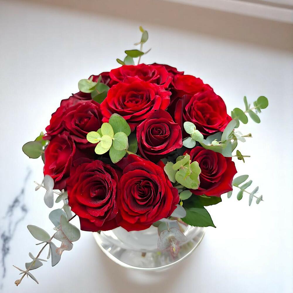 rosas rojas - 15 pce eucalyptus cinerea - 5 pce