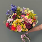 Alstroemeria - 3 pce tanacetum - 3 pce delphinium - 2 pce flores variadas - 5 pce claveles - 5 pce rosa spray - 3 pce
