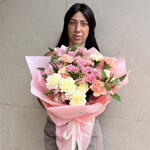 Ce magnifique arrangement floral de la catégorie d'auteur présente une charmante combinaison de 6 magnifiques alstroemères, 5 délicates roses et 11 œillets vibrants. Avec un design unique et une sélection harmonieuse de couleurs, cet arrangement illuminera assurément n'importe quel espace, lui apportant sophistication et élégance. Que ce soit pour offrir ou pour en profiter chez vous, vous apprécierez sans aucun doute la fraîcheur et la beauté de ces fleurs.