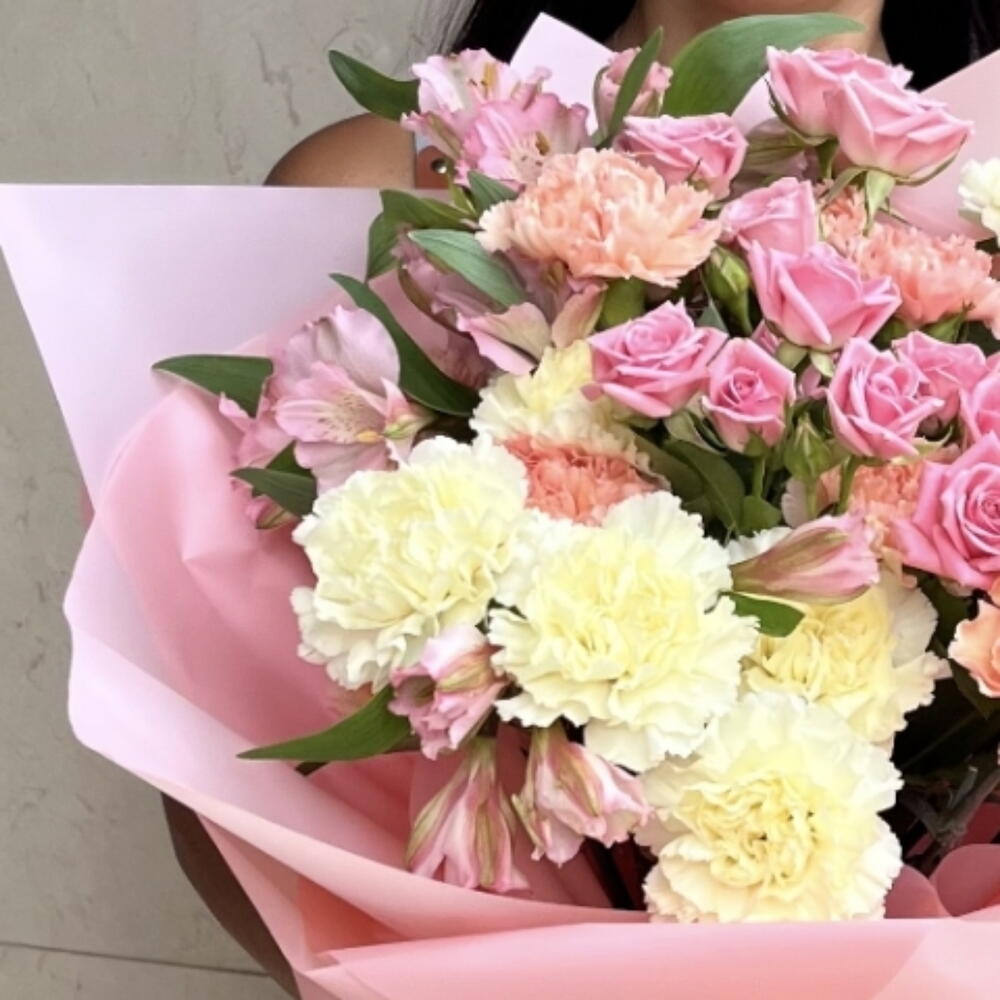 Ce magnifique arrangement floral de la catégorie d'auteur présente une charmante combinaison de 6 magnifiques alstroemères, 5 délicates roses et 11 œillets vibrants. Avec un design unique et une sélection harmonieuse de couleurs, cet arrangement illuminera assurément n'importe quel espace, lui apportant sophistication et élégance. Que ce soit pour offrir ou pour en profiter chez vous, vous apprécierez sans aucun doute la fraîcheur et la beauté de ces fleurs.