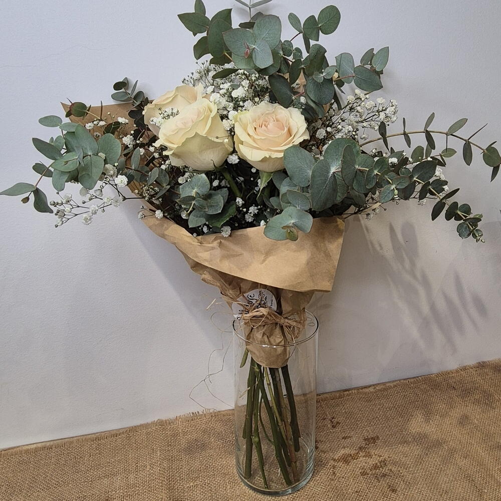 paniculata - 4 pce eucalyptus cinerea - 8 pce roses blanches roses - 6 pce