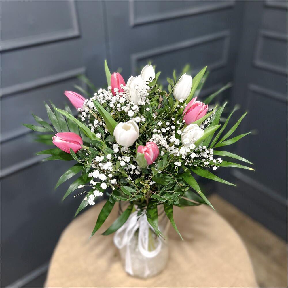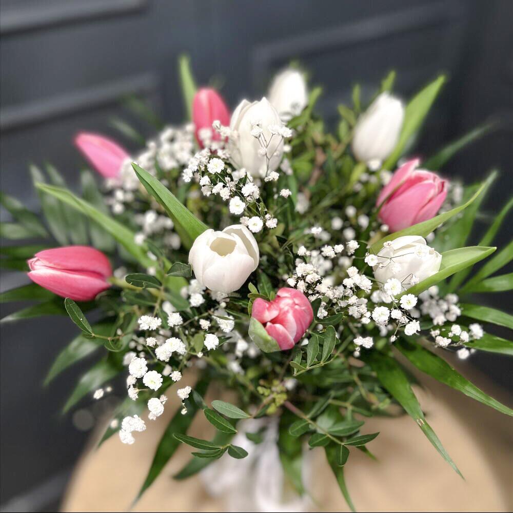 Le bouquet « Amalia » est une composition florale raffinée qui se distingue par sa fraîcheur et son harmonie. Il est composé de tulipes aux tons blancs et roses, de délicates branches de gypsophile et d'un mélange de feuillage vert lentisque et robellini qui encadrent les fleurs avec un style naturel et élégant. C'est le cadeau idéal pour les occasions spéciales comme les anniversaires, ou tout simplement pour exprimer son affection et son admiration. Chaque bouquet est fabriqué à la main par les fleuristes de Nerine Arte Floral, garantissant qualité et fraîcheur dans les moindres détails. Conseils d'entretien : Placez le bouquet dans un vase propre rempli d'eau fraîche, à l'abri de la lumière directe du soleil et des sources de chaleur. Changez l'eau tous les deux jours et taillez légèrement les tiges en biais pour prolonger la vie des fleurs. Évitez les zones où se trouvent des fruits, car l'éthylène peut accélérer le flétrissement. 📌AVIS IMPORTANT : La couleur des tulipes peut varier selon les disponibilités. Pour personnaliser votre commande, n'hésitez pas à nous contacter.