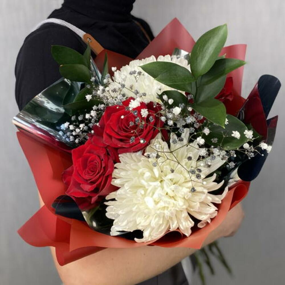 Un bouquet élégant et sophistiqué alliant la passion des roses rouges, la pureté des chrysanthèmes blancs et la délicatesse de la gypsophile. Parfait pour exprimer votre amour, votre gratitude ou apporter une touche de luxe à toute occasion spéciale. Emballés dans un papier rouge vif, les tons contrastés des fleurs créent un bouquet inoubliable. Pour préserver la fraîcheur des fleurs, placez le bouquet dans un vase propre rempli d'eau fraîche dès réception. Changez l'eau régulièrement et coupez les tiges à 45° avant de les placer dans le vase. Conservez le bouquet à l'abri de la lumière directe du soleil, des courants d'air et des fruits mûrs. L'ajout d'un conservateur floral dans l'eau prolongera la durée de vie de la composition. Retirez les fleurs fanées pour préserver la fraîcheur et l'éclat du bouquet plus longtemps.