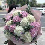 eucalyptus - 1 pce hortensias - 15 pce nœud de ruban - 1 pce papier coréen - 1 pce